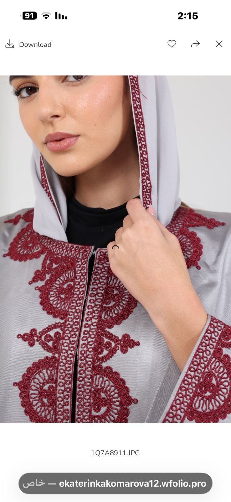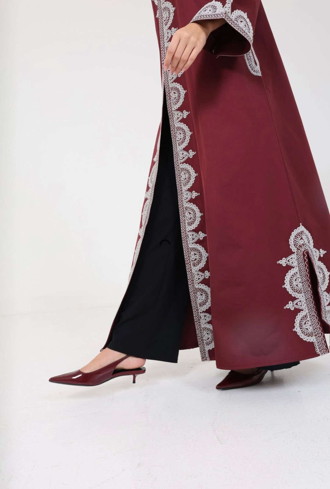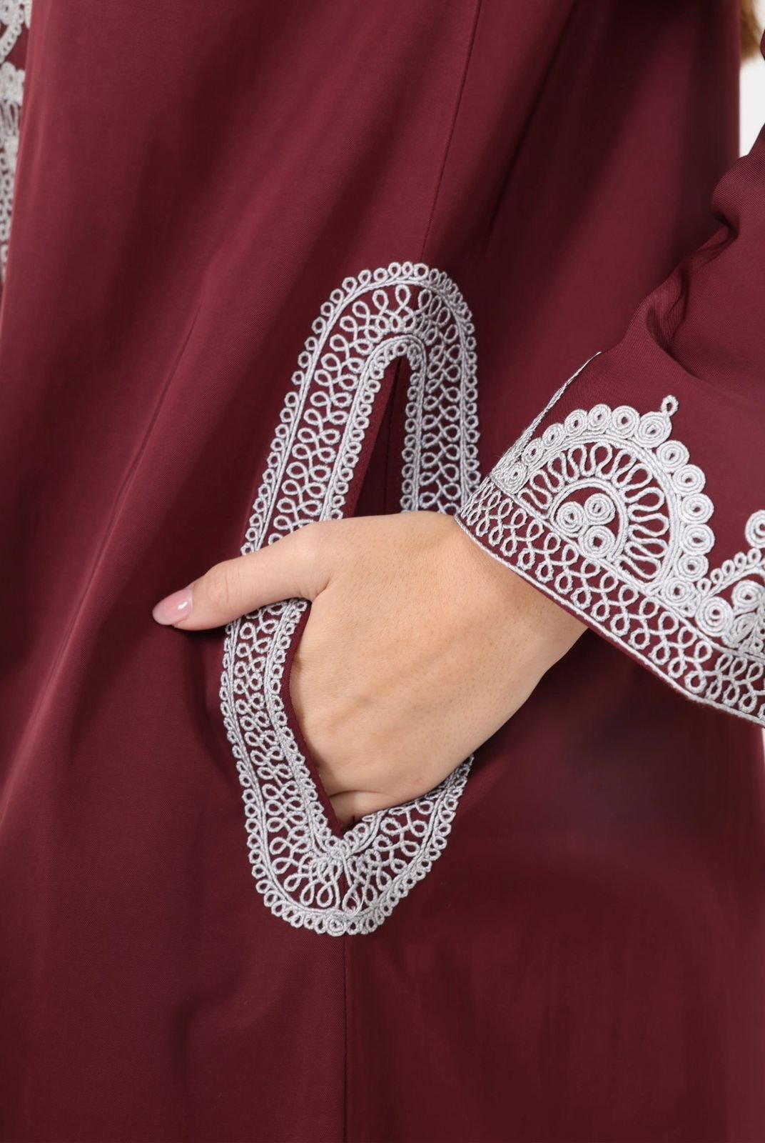 اللون رمادي والتطريز مارون